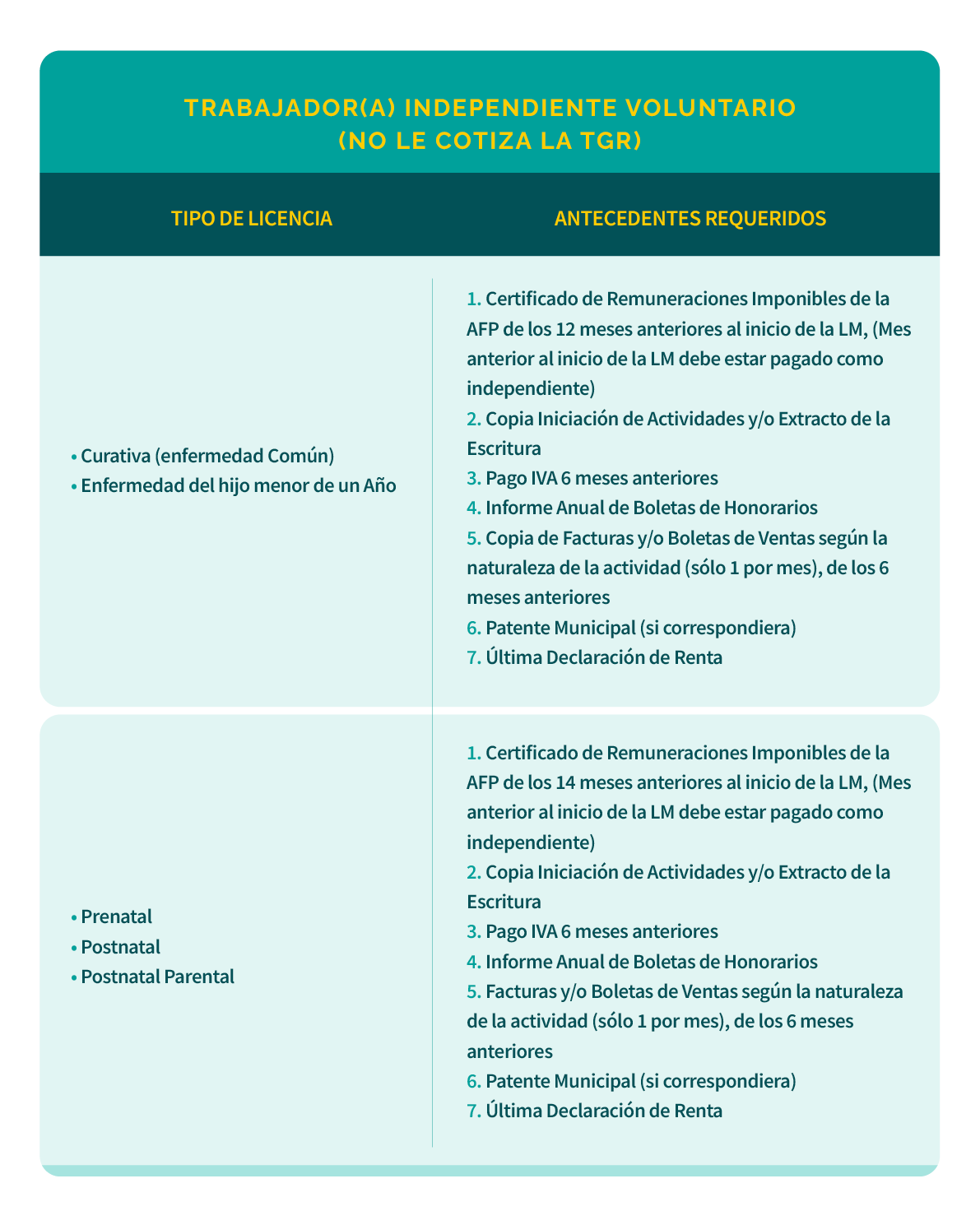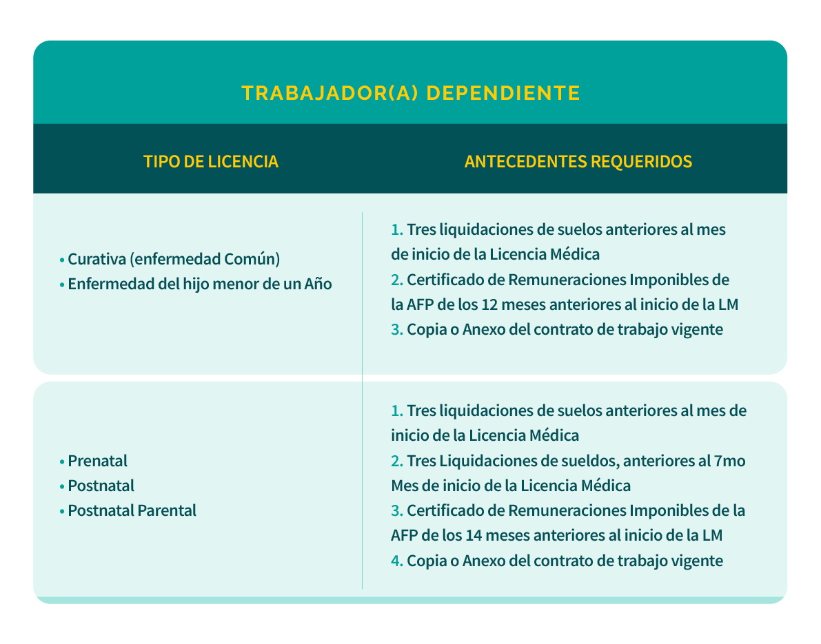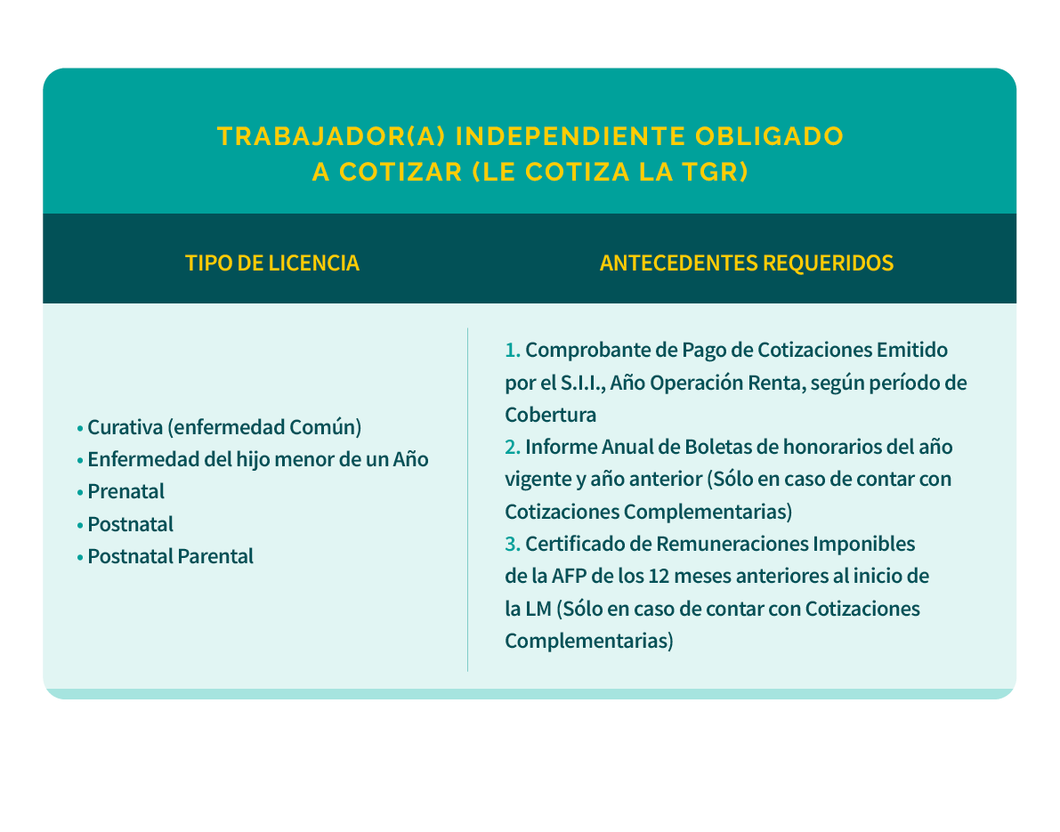 Para gestionar tu licencia debes adjuntar la documentación requerida según el tipo de cotizante que corresponda a tu caso, como se detalla a continuación: